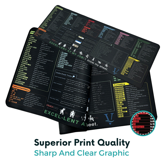 Excel Shortcut Mouse Pad – 800x300mm XL Desk Mat for Office & Home – Non-Slip Base, Locked Edge, Printed Spreadsheet Shortcuts
