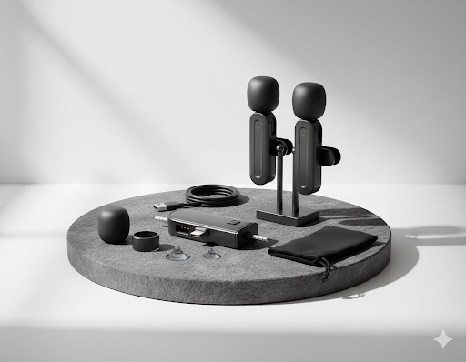 SX26 Wireless Microphone with 2 Noise-Canceling Mics, USB-C Fast Charging, Lightweight Design for Streaming, Video Recording, and Interviews